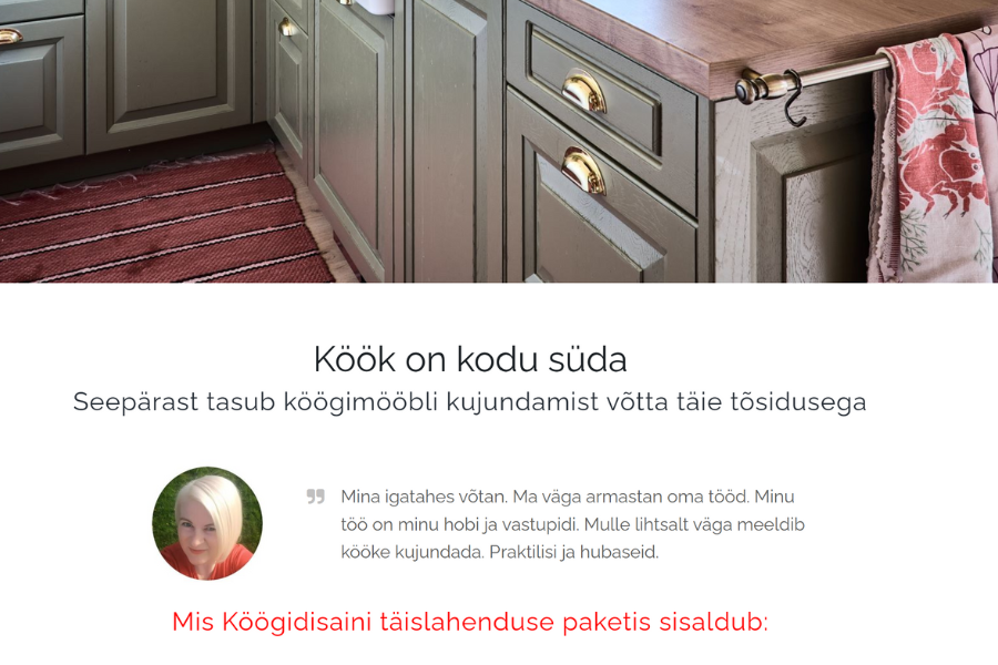 Seejärel hakkasin sinna üles panema enda kujundatud kööke ning kirjutama ka blogiartikleid, mis võiksid inimesi huvitada ja neid aidata. Jagasin artikleid ka meediaga, sest mulle meeldib oma teadmisi jagada. Ühel hetkel kulus mul aega selleks, et kirjutada ajakirjandusele igasuguseid köögiteemalisi artikleid ning vastata kommentaaridele rohkem, kui mul jagus nädalas päevi oma klientidele köögijooniste tegemiseks.